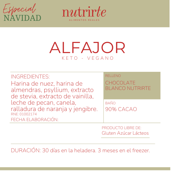Ingredientes: Harina de nuez, harina de almendras, psyllium, extracto de stevia, extracto de vainilla, leche de pecan, canela, ralladura de naranja y jengibre.