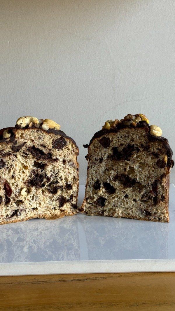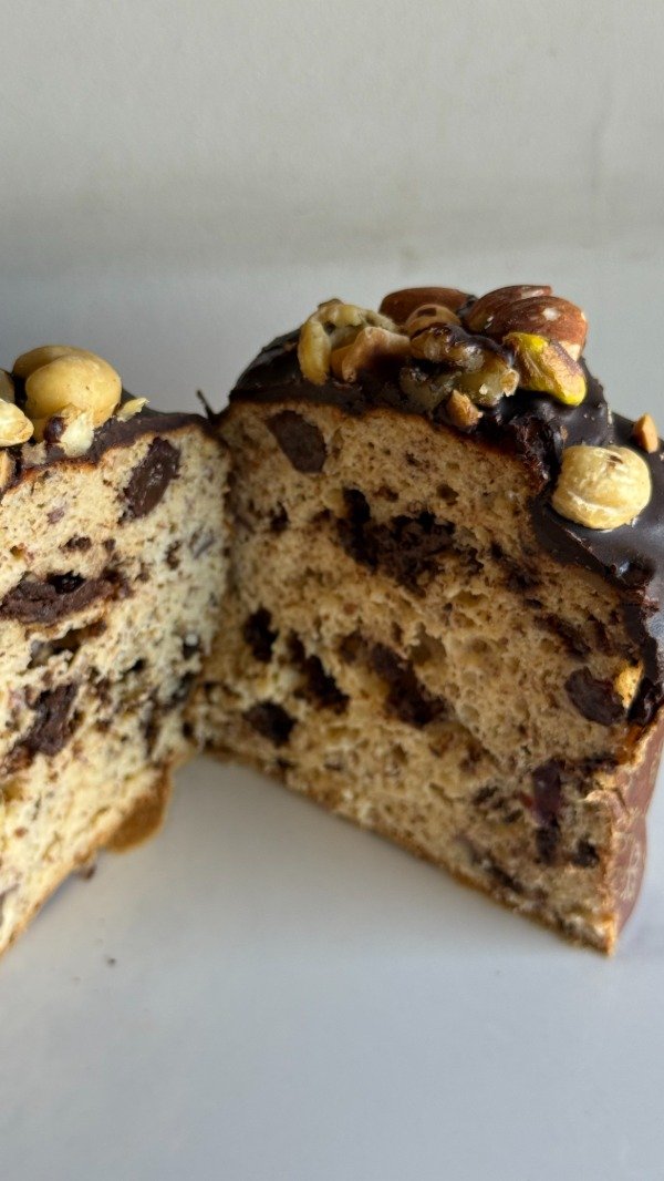 Ingredientes: harina de almendras, chocolate 90 cacao, nueces, huevo de pastura, leche de almendras, aceite de coco virgen, polvo de hornear, stevia, psyllium, goma xantica, extracto de vainilla, agua de azahar.
